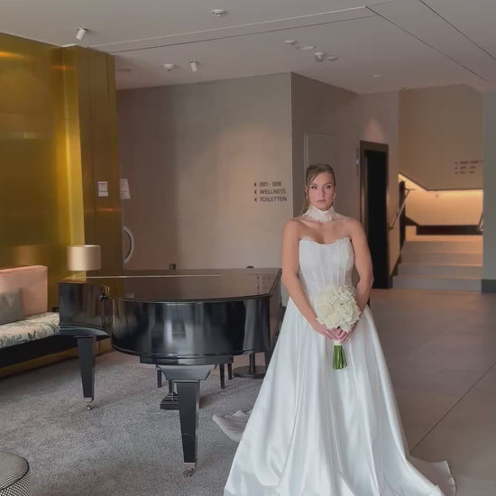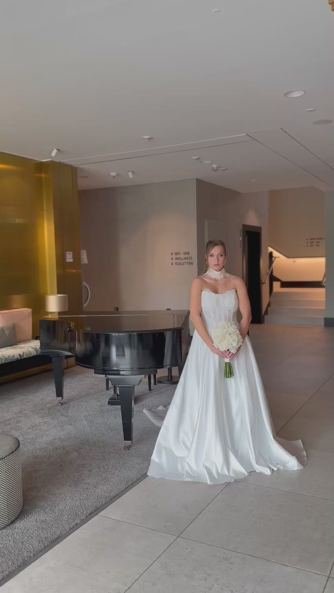 Das Brautkleid HADASSAH vereint klassische Eleganz mit moderner Raffinesse und wird zur perfekten Wahl für Bräute, die an ihrem großen Tag ein unvergessliches Statement setzen möchten.